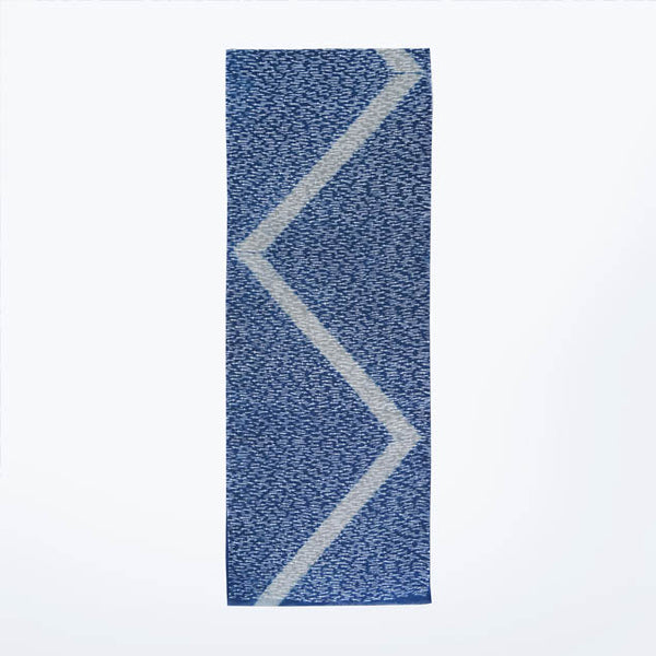歌舞伎や舞台でお馴染みのこの山道手拭は、形彫り・糊付・藍染と多くの職人の手を経て作られた品です。